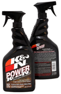 K&N’s newly packaged POWER KLEEN™ High Performance Cleaner and Degreaser was originally used to remove contaminants, road grime, and grease from its cotton air filters. It is now formulated to clean both your cotton high-flow air filters, as well as those troublesome and demanding cleaning jobs that make you cringe most. The POWER KLEEN™ cleaner is specially formulated to remove oil, lubricants, grease, grime, and other deposits from most surfaces including cotton air filters, painted surfaces, chrome, plastic and more! Available in your local Powersports or automotive parts & accessories retailer, ask for it by name.