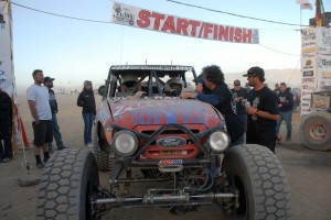 The Lovell Racing crew showed up on Means Dry Lakebed with the best equipment, personnel, and strategy. As soon as the pre-run file was available, the team took to the desert to explore the brutal terrain. Bugs were quickly worked out of the race trucks and everything went relatively smoothly until a vicious wind storm blew the team tent away scattering tools and parts. Luckily, nobody was injured, the pit was reorganized, and pre-running continued for the next 2 days.