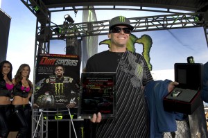 The enthusiastic winner was honored by Dirt Sports magazine publisher/owner Jim Ryan and LOORRS television announcer Cameron Steele during a special ceremony held in the massive Monster Energy hospitality area at this past weekend’s Supercross event at Anaheim Stadium. During the ceremony, Huseman’s gritty February 2011 cover, shot by artist Boyd Jaynes, was also unveiled. The event was also co-hosted by Blue C Communications and Wahoo’s Fish Taco.