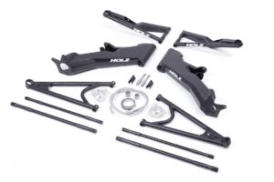 Dramatically upgrade handling and stability with the same Long Travel Suspension Kit used on the Holz Racing Commander. This kit is 3” wider per side for increased handling capability and resistance to roll overs. Wheel travel is increased to 11.5” and wheel base is +4” longer. Kit features/includes the following: