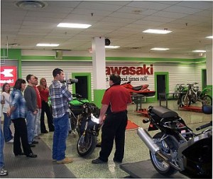 In the photo, Chris Viningre, The PSI manufacturer specific instructor for Kawasaki demonstrates how to run a series of troubleshooting tests using Kawasaki’s Diagnostic System (KDS).