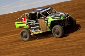 With Grandma Geri still in the Arizona hospital, Chad looked toward Sunday’s Round 12 as an opportunity to slaughter the competition with a statement of “Strength and Survival” for his #1 fan. The morning started out great with the #1 Monster Energy Kawasaki Teryx leading the pack of hungry wolves until a steering component gave way, forcing Chad out of contention. Chad commented, “Its unfortunate to have such a fast Monster Energy Kawasaki Teryx and have something like this happen. All of these UTV Modifieds are pushed to the limit, it’s really an endurance race we are all fighting to win. We won yesteday, we’ll be ready to win again at Las Vegas Motor Speedway in November.”
