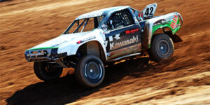 As the temperature creeped up under the blue skies of Arizona, the SuperLite Championship race was set to kick off for Round 12 of the Lucas Oil Off-Road Racing Series. Chad had already put the UTV race behind him and had his sights set on one thing, WINNING. With a comfortable second-row starting position, Chad took the green flag and drove his own race for 6 laps, keeping clear of the chaos all around him. After the half-way point, Chad took a spectacular green-flag restart toward the front, quickly passing 2 trucks in a tangle, and leading the 14 truck field. Chad continued to punish the King Shocks equipped #42 Kawasaki/Yokohama Tires truck off every jump until he launched through the checkered flag claiming his second SuperLite Championship victory of 2011. The WIN also boosted Chad into the series points lead marking him as the current target for 2011 SuperLite Champion.