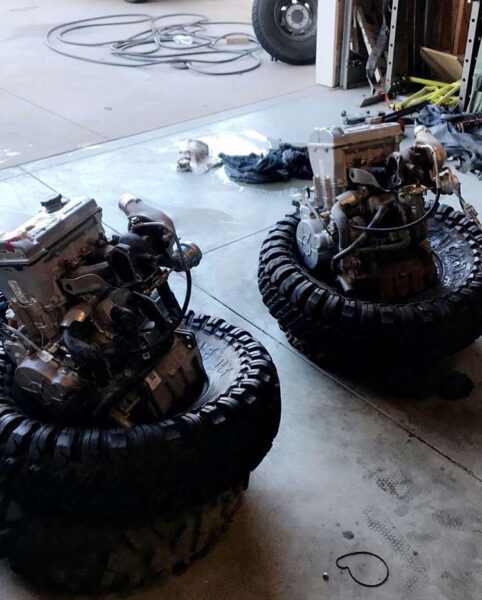 When he got home at 7pm on Sunday January 28th we only had three days to find a motor and swap it out before we had to be back on the lake bed Thursday February 1st to start pre-running. My dad called Mitch Guthrie and asked if he knew anyone that could rebuild a motor in three days. Mitch said he had an extra engine they just pulled out of Jr’s desert car, and that we could use it for the race. We were extremely thankful and excited that night thinking we might be able to get everything back together in time.